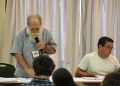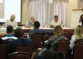 A última mesa do primeiro dia tratou do tema principal do encontro: identidade e organização dos trabalhadores técnicos administrativos e auxiliares de administração escolar. O debate foi conduzido por Leandro Batista (coordenador da Secretaria de Assuntos Jurídicos da Contee), Luiz Gambim (Sintae-RS), João Batista (Fesaaemg), Maria (Saep-DF), Leonil Silva (Fitee).
