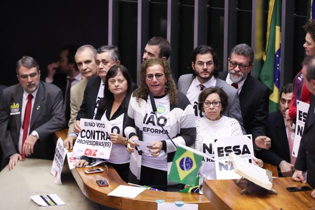 A Câmara dos Deputados concluiu, dia 12, a votação em 1º turno da reforma da Previdência. A análise em 2º turno terá início no dia 6 de agosto. Os governistas, em especial o PSL do presidente da República, Jair Bolsonaro, e o DEM, do presidente da Câmara, Rodrigo Maia, comemoraram o resultado. A oposição anunciou que vai tentar alterar pontos da proposta prejudiciais aos trabalhadores e aposentados no segundo turno. A Contee e as centrais sindicais continuarão a mobilização para barrar a reforma, na Câmara e, se ela passar pelo segundo turno, no Senado.
