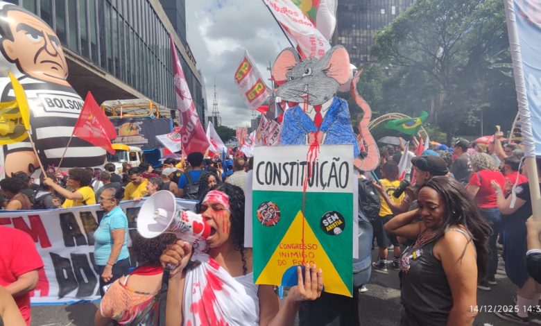 Milhares ocuparam as ruas de todas as capitais brasileiras neste domingo (14) em protesto contra o Projeto de Lei da Dosimetria (PL 2162/2023), aprovado na Câmara dos Deputados na madrugada do dia 10 de dezembro. O PL permite reduzir o cálculo das penas, a chamada dosimetria, de condenados pelos atos golpistas de 8 de janeiro de 2023 e favorece o ex-presidente Jair Bolsonaro.