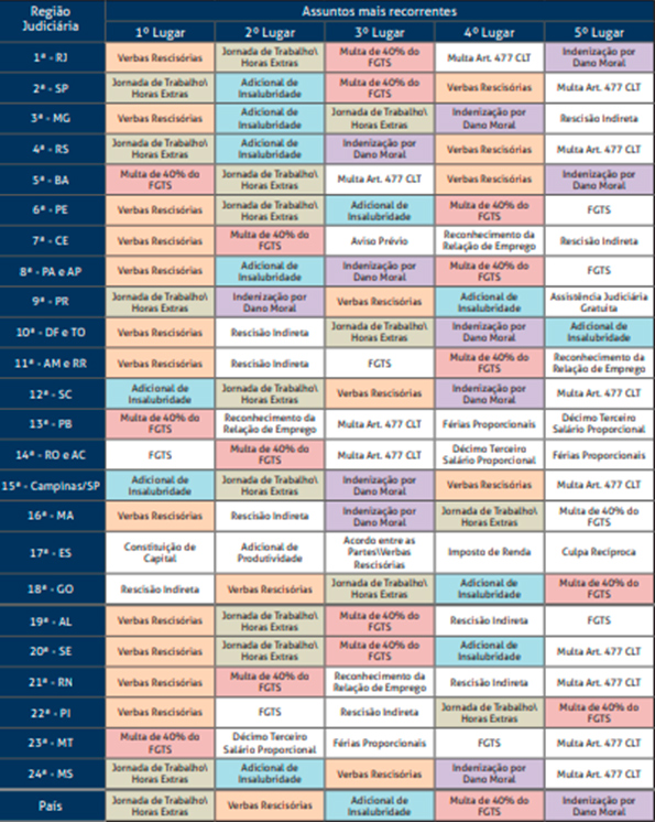 “Tabela. Cinco assuntos mais recorrentes na Vara de Trabalho