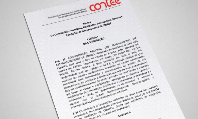 “Art. 1º CONFEDERAÇÃO NACIONAL DOS TRABALHADORES EM ESTABELECIMENTOS DE ENSINO, designada abreviadamente pela sigla CONTEE, com sede e foro na cidade de Brasília, Setor Bancário Sul, quadra 01, Edifício Seguradoras, 15º andar, CEP 70.093-900, Asa Sul, Brasília, Distrito Federal, e base territorial em todo o país, em conformidade com seu registro no M T E, é entidade sindical de grau superior do sistema confederativo brasileiro, de caráter permanente, constituída para coordenação e representação, no âmbito, de sua competência, de sindicatos e federações que representam trabalhadores (as) em estabelecimentos de ensino privado, de nível básico e superior, em todas as etapas e modalidades, abrangendo as diversas formas e modalidades de contratação, dentre elas a terceirizada, a pejotizada e a autônoma; e, ainda, os aposentados, as aposentadas e aqueles e aquelas que se acham involuntariamente desempregados e desempregadas, conforme respectivos estatutos.”