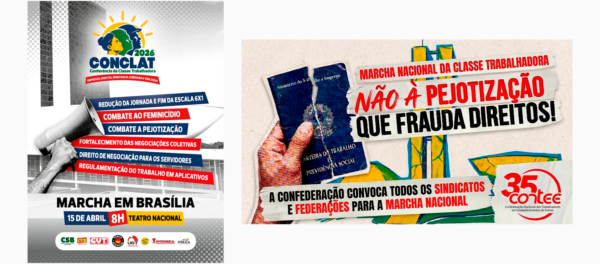 Com o lema “Empregos, Direitos, Soberania, Democracia e Vida Digna”, acontece em Brasília, no dia 15 de abril, a Conclat 2026 (Conferência da Classe Trabalhadora) e a Marcha Nacional da Classe Trabalhadora. A atividade integra o calendário de lutas das centrais sindicais e entidades nacionais, reafirmando a importância da unidade da classe trabalhadora na defesa dos direitos, da valorização do trabalho e da democracia.