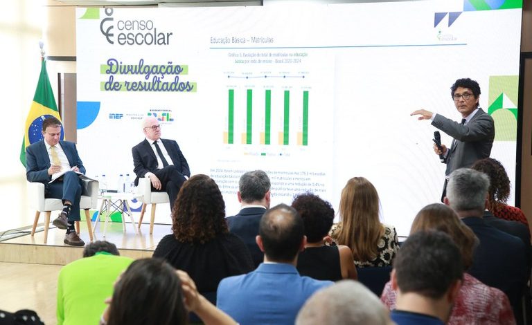 Inclusão: Se considerada somente a faixa etária de 4 a 17 anos, o percentual de matrículas de alunos incluídos em classes comuns também aumenta gradativamente — de 93,2%, em 2020, para 95,7%, em 2024. O ensino médio se destaca como a etapa da educação com a maior proporção de alunos incluídos em classes comuns.