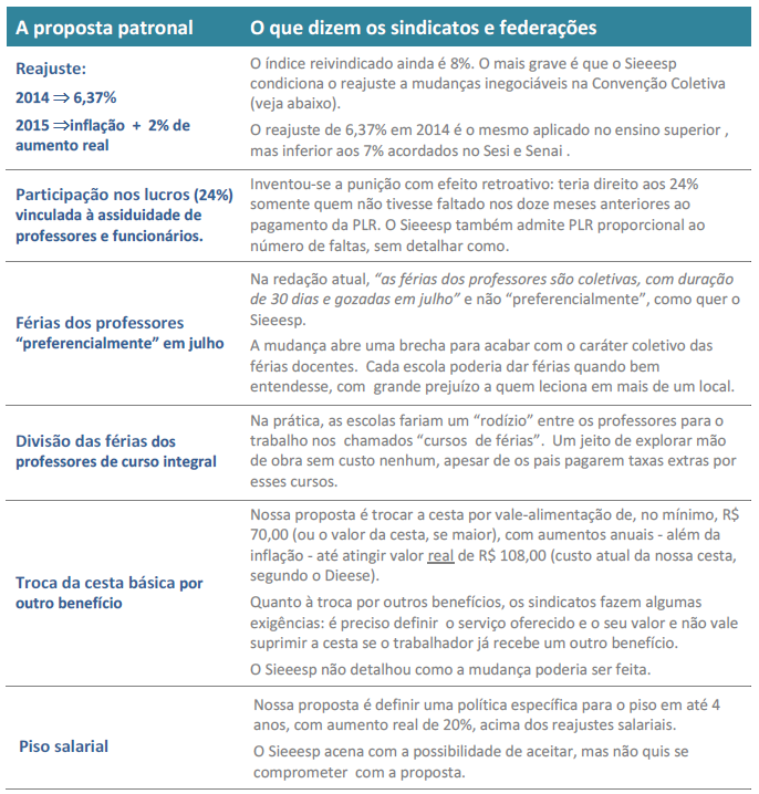 Durante toda a semana, sindicatos e federações procuraram negociar com o Sieeesp na tentativa de buscar um acordo. A contraproposta surgiu somente na noite de 5ª feira (20).