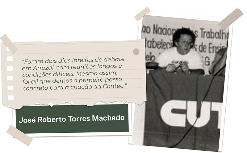 Os convidados relembraram um ambiente de intensas disputas políticas, intervenções do Estado nas entidades sindicais e enfrentamentos com estruturas burocratizadas que limitavam a autonomia e a participação da base. Um dos marcos desse processo foi o encontro realizado em Volta Redonda (RJ), no distrito de Arrozal, que antecedeu a fundação formal da Confederação. José Roberto recordou que “Foram dois dias inteiros de debate em Arrozal, com reuniões longas e condições difíceis. Mesmo assim, foi ali que demos o primeiro passo concreto para a criação da CONTEE.”