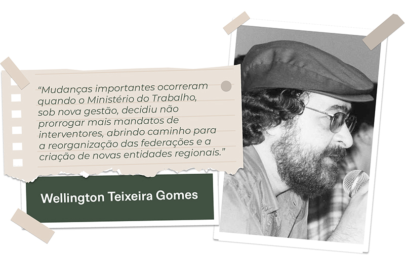 Ao longo da conversa, a edição especial construiu um verdadeiro túnel do tempo, situando o nascimento da CONTEE no contexto político do final da década de 1980, período marcado pela redemocratização do país, pela Assembleia Constituinte e pela reorganização do movimento sindical após mais de duas décadas de ditadura. Nesse cenário, Wellington destacou que “Mudanças importantes ocorreram quando o Ministério do Trabalho, sob nova gestão, decidiu não prorrogar mais mandatos de interventores, abrindo caminho para a reorganização das federações e a criação de novas entidades regionais.” Esse movimento foi decisivo para a retomada da autonomia sindical naquele período.