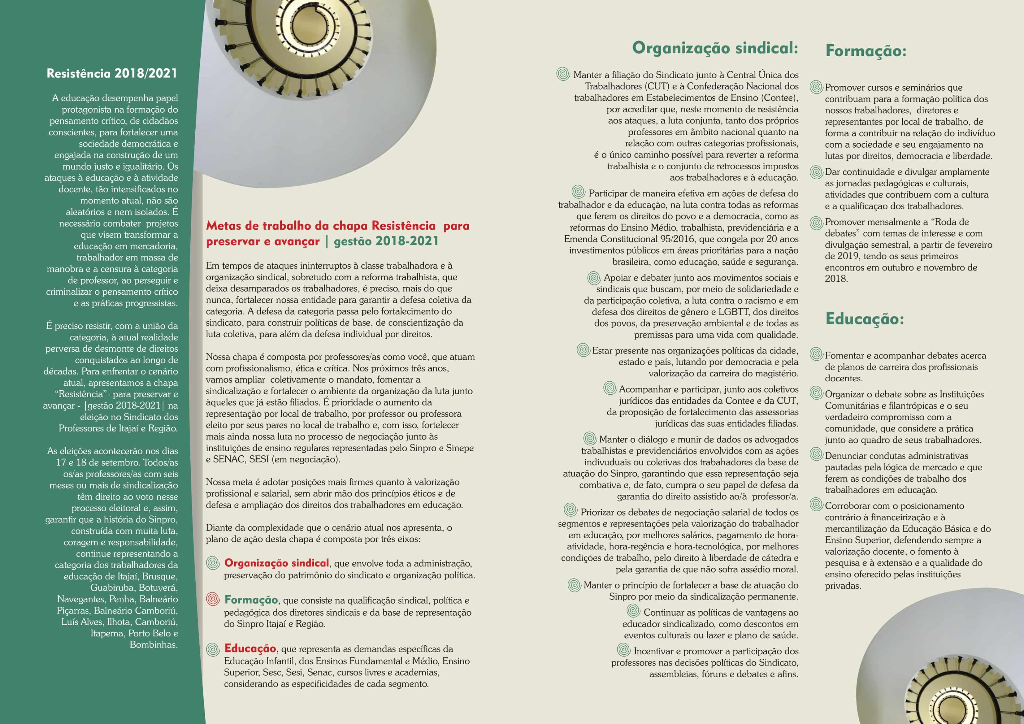 Conheça os integrantes e metas de trabalho da chapa Resistência para preservar e avançar.
