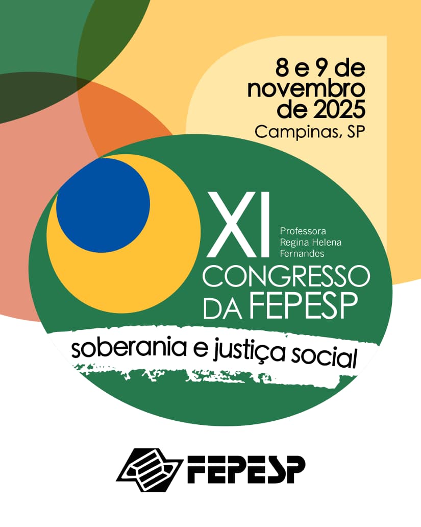 A Federação dos Professores do Estado de São Paulo (Fepesp) realiza, neste sábado (8) e domingo (9), o seu XI Congresso, sob o tema “Soberania e Justiça Social”. O evento, que acontecerá no Hotel Dan Inn, em Campinas (SP), reunirá delegados e delegadas eleitos pelos sindicatos filiados para debater os rumos do trabalho docente, da educação e do sindicalismo no estado e no país.
