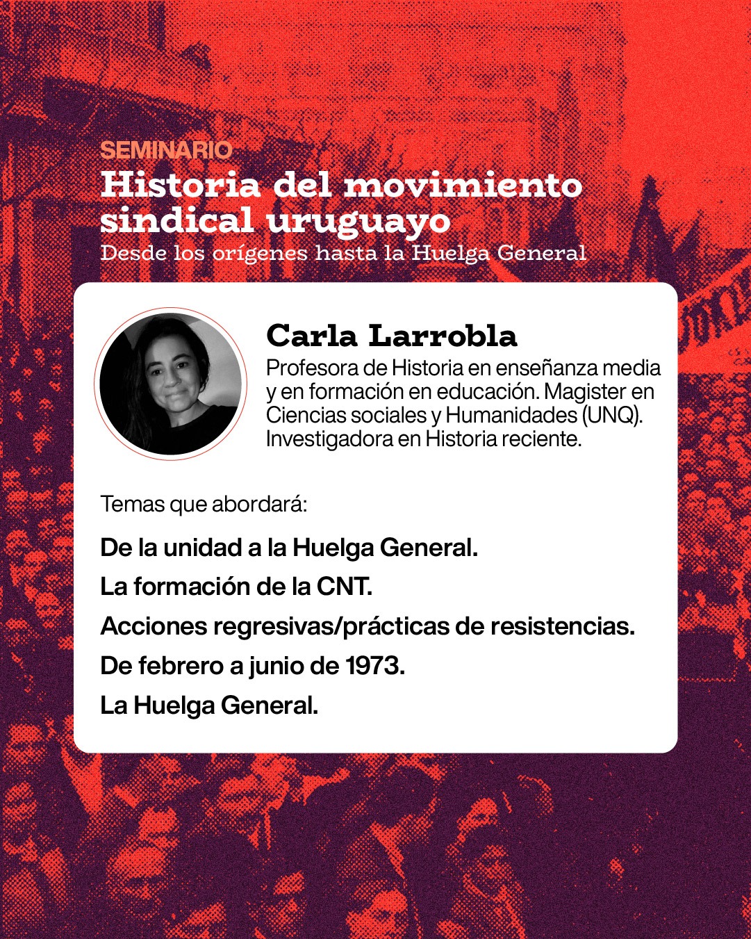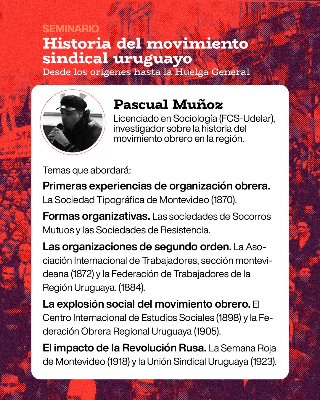Com um olhar aprofundado sobre o percurso histórico do sindicalismo no Uruguai, o evento reunirá pesquisadoras e pesquisadores de destaque para discutir temas como: