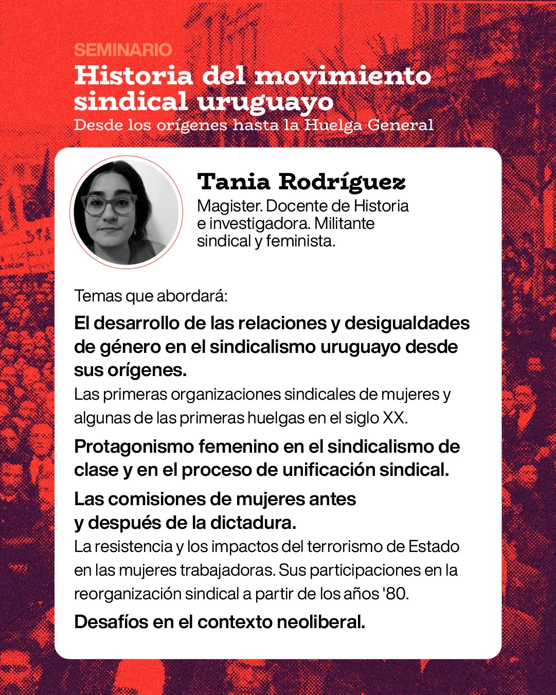 Com um olhar aprofundado sobre o percurso histórico do sindicalismo no Uruguai, o evento reunirá pesquisadoras e pesquisadores de destaque para discutir temas como: