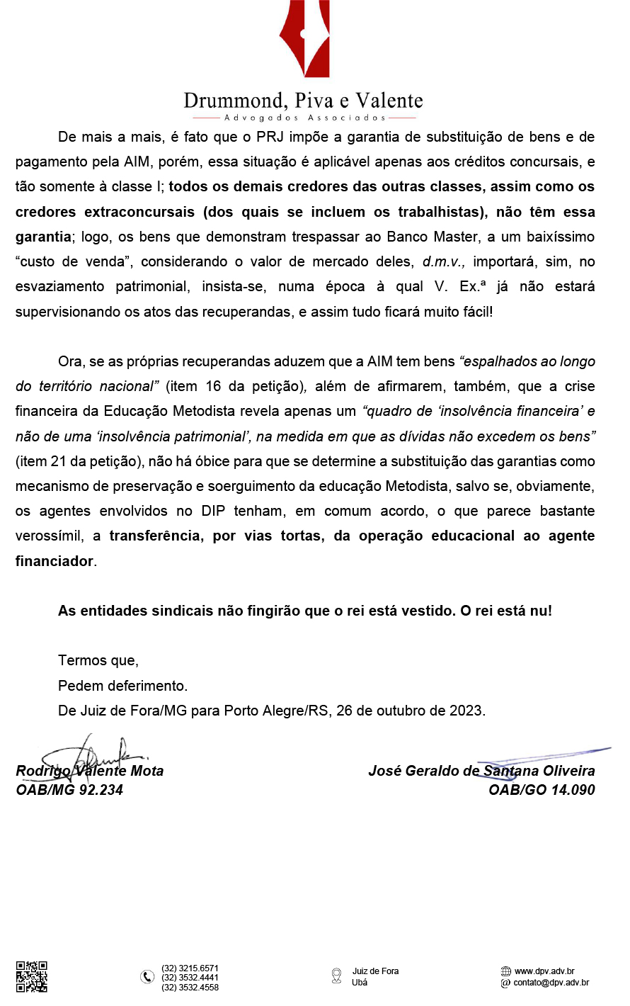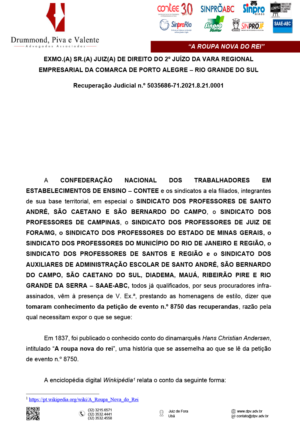 O caso metodista: O rei está nu Leia abaixo a manifestação da Contee e das entidades filiadas sobre os últimos acontecimentos envolvendo o plano de recuperação judicial da rede 27/10/2023Última Atualização 27/10/20230 334 Menos de um minuto 27/10/2023Última Atualização 27/10/20230 334 Menos de um minuto Compartilhar Facebook X Linkedin Tumblr Pinterest Reddit WhatsApp Telegram Compartilhar via e-mail Imprimir