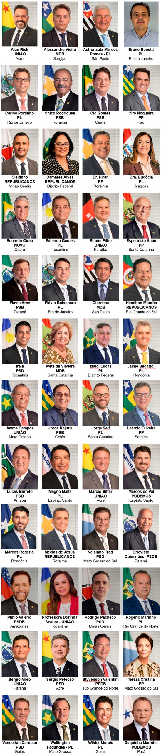Confira a seguir a lista dos 48 senadores que legislam de costas para o povo: