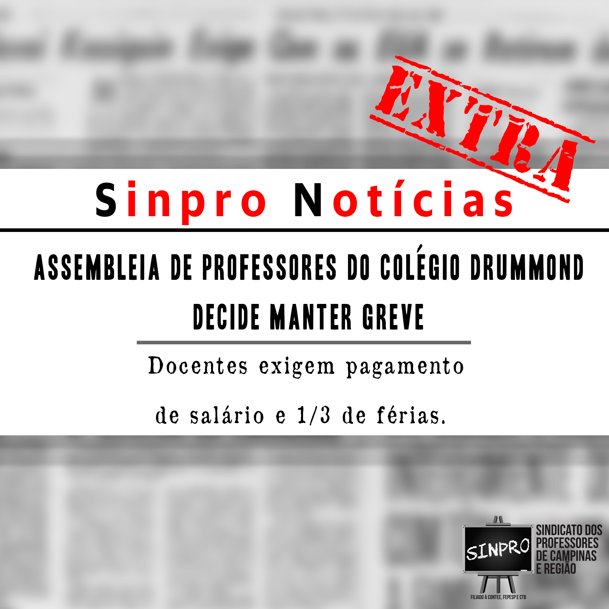Sinpro Campinas e Região: Sem pagamento, professores do Colégio Drummond continuam em greve