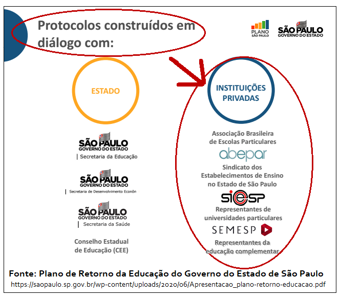 O fato é que esses protocolos foram feitos num ambiente de muita pressão para que as escolas pudessem ser abertas a qualquer custo. No governo Dória, a formulação do protocolo contou com a participação ativa das entidades patronais – Sieeesp, Semesp e Abepar.